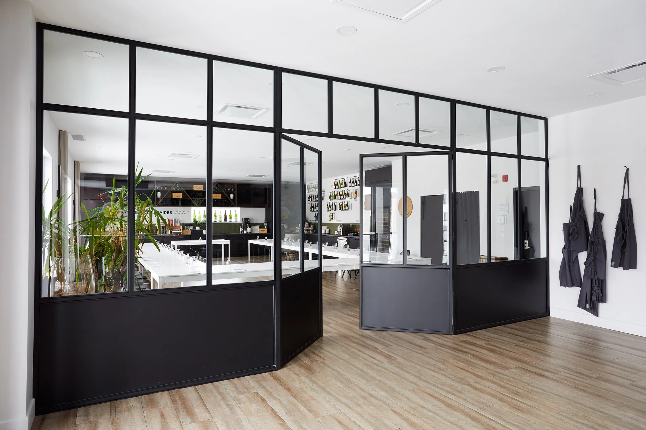 L'idée derrière ce projet était de créer deux zones distinctes tout en restant communicantes visuellement et physiquement. Cette division réussie merveilleusement son mandat de séparation visuelle et ce dans un esthétisme complet.