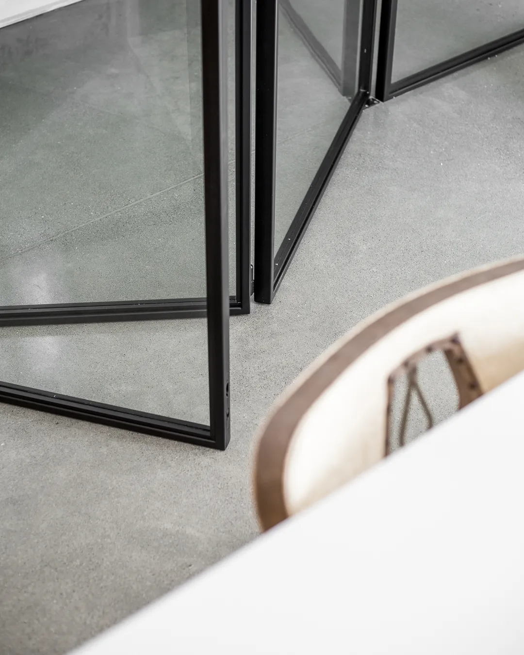 La verrière accordéon, se distingue par sa polyvalence exceptionnelle. Lorsqu'elle est complètement fermée, elle offre une délimitation claire des espaces. Grâce à sa porte, il est possible de passer aisément d'une pièce à l'autre, comme dans une configuration standard. Ce qui rend cette verrière vraiment unique, c'est son système de partitions pliantes sur pivots. Lorsqu'il est complètement déployé, ce système offre un espace considérablement plus grand, permettant ainsi une transformation rapide et efficace de l'environnement. Cette verrière polyvalente s'adapte parfaitement à vos besoins, qu'il s'agisse de créer une séparation intime entre les pièces ou de les fusionner pour obtenir un espace plus vaste et ouvert.