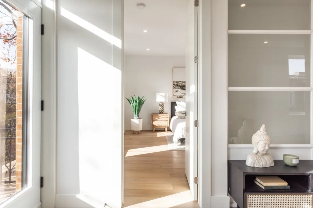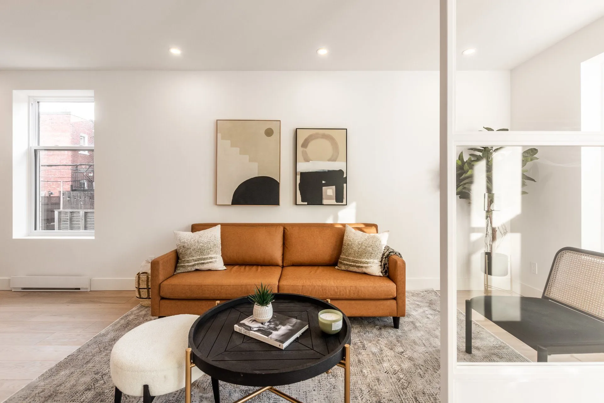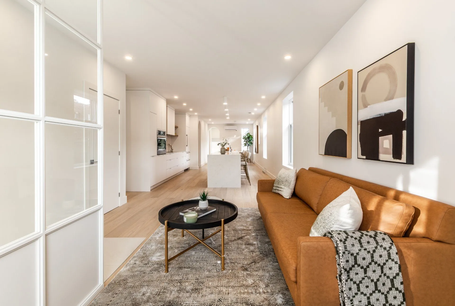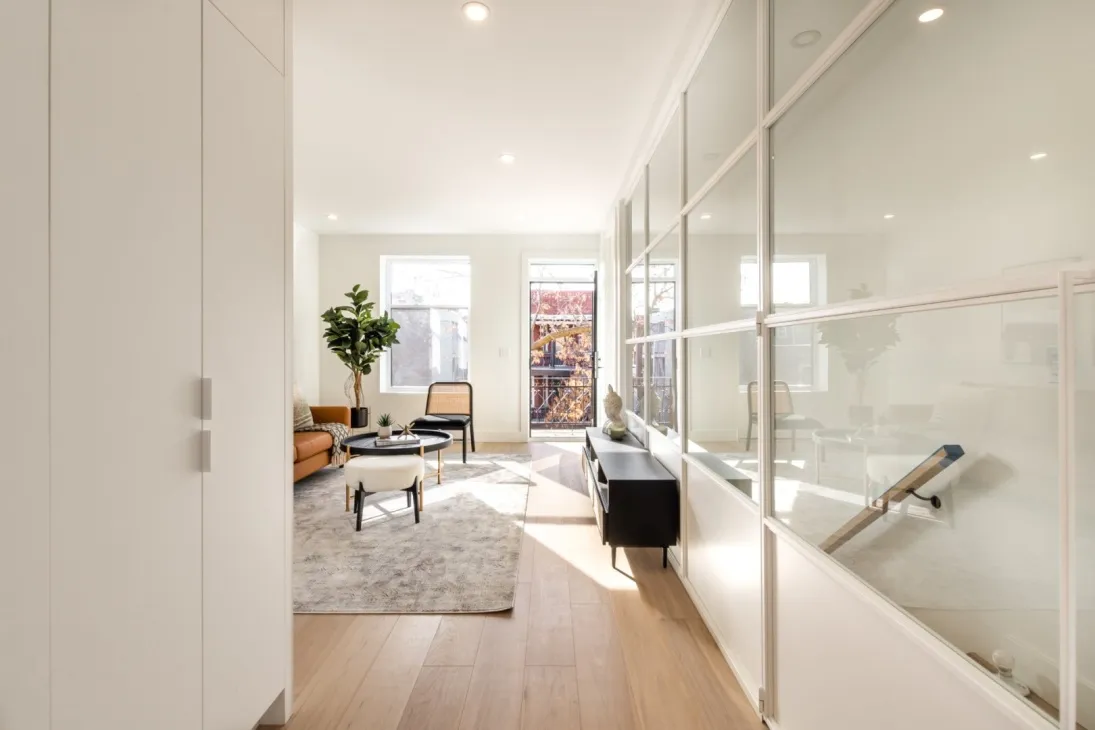 Le projet Rivard est un duplex montréalais complètement rénové dont les 2 logements bénéficient de verrières à leurs entrées respectives. Ces verrières sur-mesure ont été conçues pour offrir, aux espaces plus restreints, un effet de grandeur. Le blanc procure beaucoup de légèreté et accentue la luminosité qui pénètre les espaces de vie.