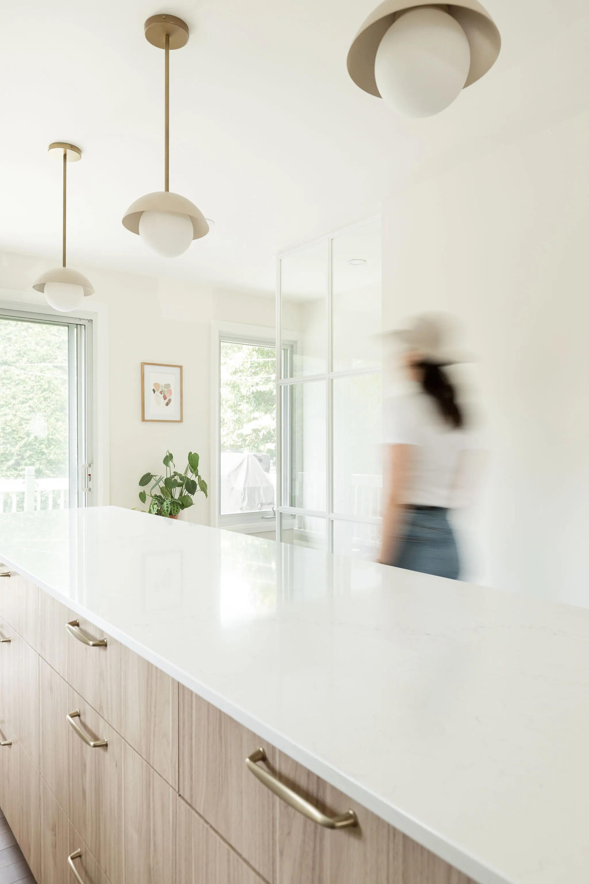 Une verrière d'une élégance discrète, s'étirant du plancher au plafond, agit comme un garde-corps. Cette structure minimaliste crée une séparation légère tout en maintenant la luminosité de l'espace. Une fusion parfaite entre esthétique et sécurité, ajoutant une touche contemporaine à l'environnement.